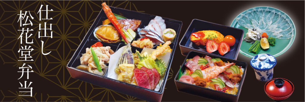 店内でのお食事以外にも、事前にご予約いただければ、惣吉ならではの魚介を使用した豊富な種類の仕出し・お弁当のご用意もできます。季節感たっぷりの松花堂弁当は予算1100円~5500円からございます。お祝い事やお集まりなどの特別な行事、会議や法要など大切なお客様のおもてなしにもご利用いただけます。