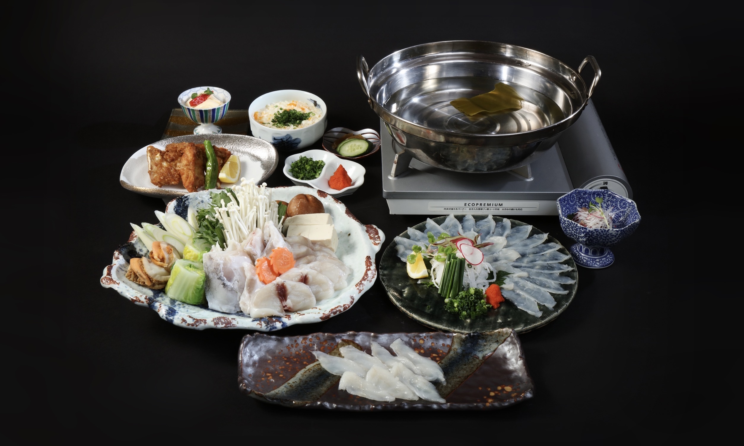 ふぐちりやふぐ刺し、ふぐから揚げなどで楽しむ当店自慢のコース